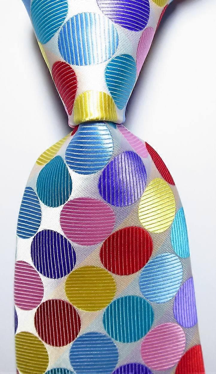 New Classic Dot White Light Blue Red JACQUARD WOVEN 100% Silk Men's Tie Necktie