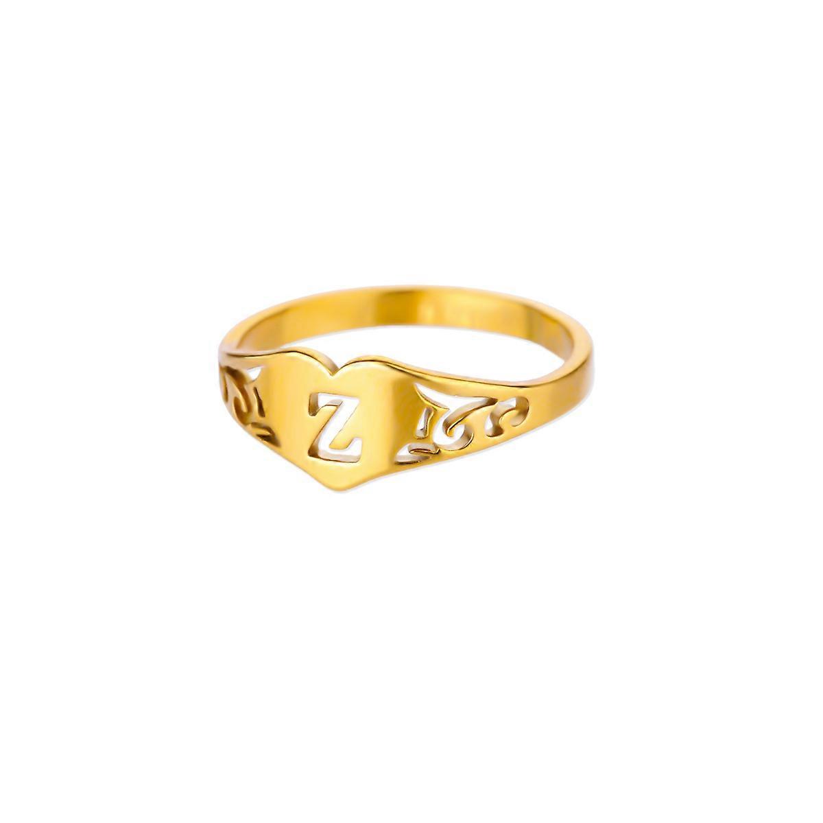 Fashion Hollow Initial Letter Heart Rings For Women Gold Color Stainless Steel A-Z Letter Ring Aesthetic Wedding Jewelry Gift