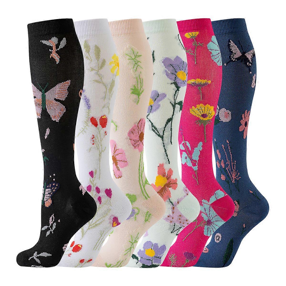 6 PAIRS Floral Compression Socks for Women & Men Nurse Graduated Compression Socks Flower Sport Stocking