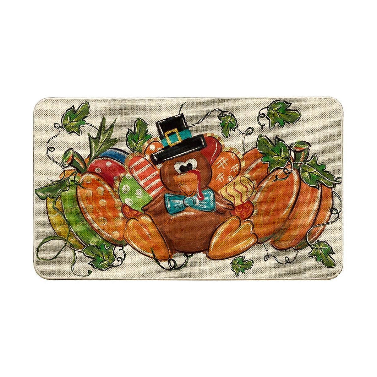 Sm:)e Turkey Pumpkin Thanksgiving Doormat, Home Decor Low-Profile Switch Rug Door Mat Floor Mat for Indoor Outdoor 17x29 Inch