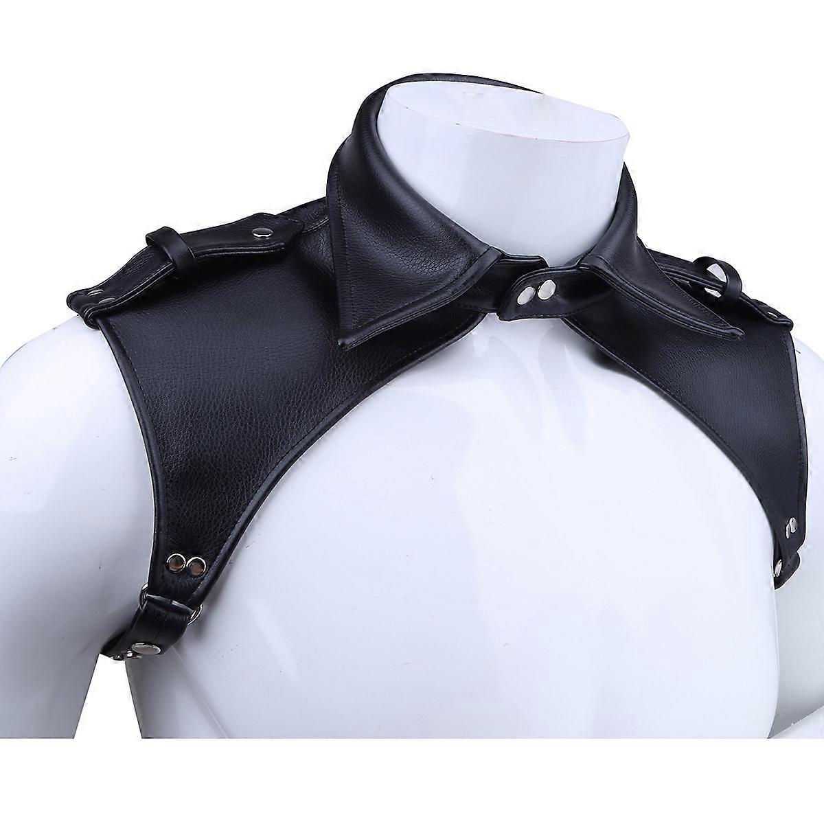 Men Lingerie Faux Leather Adjustable Body Chest Harness Lapel Costume Buttons