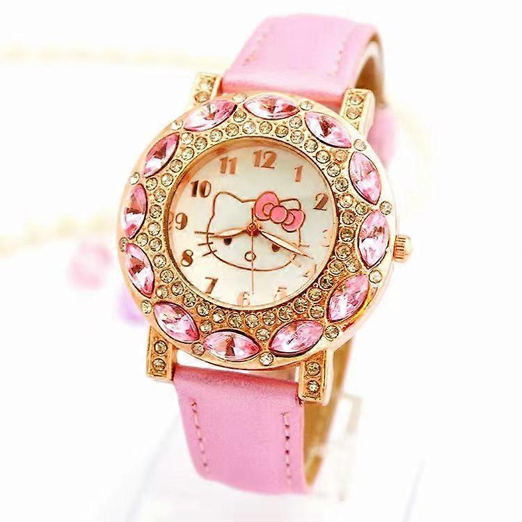 Hello Kitty Kids Watch - Crystal Studded Leather Strap Quartz Watch for Boys & Girls, Fashion Student Gift