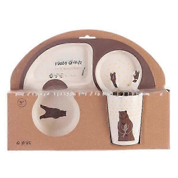 Creative New Bamboo Fiber Children's Dinnerware Set Five Pieces Set Preschool Baby Rectangle.Three.Bears Five.piece.set.with.box