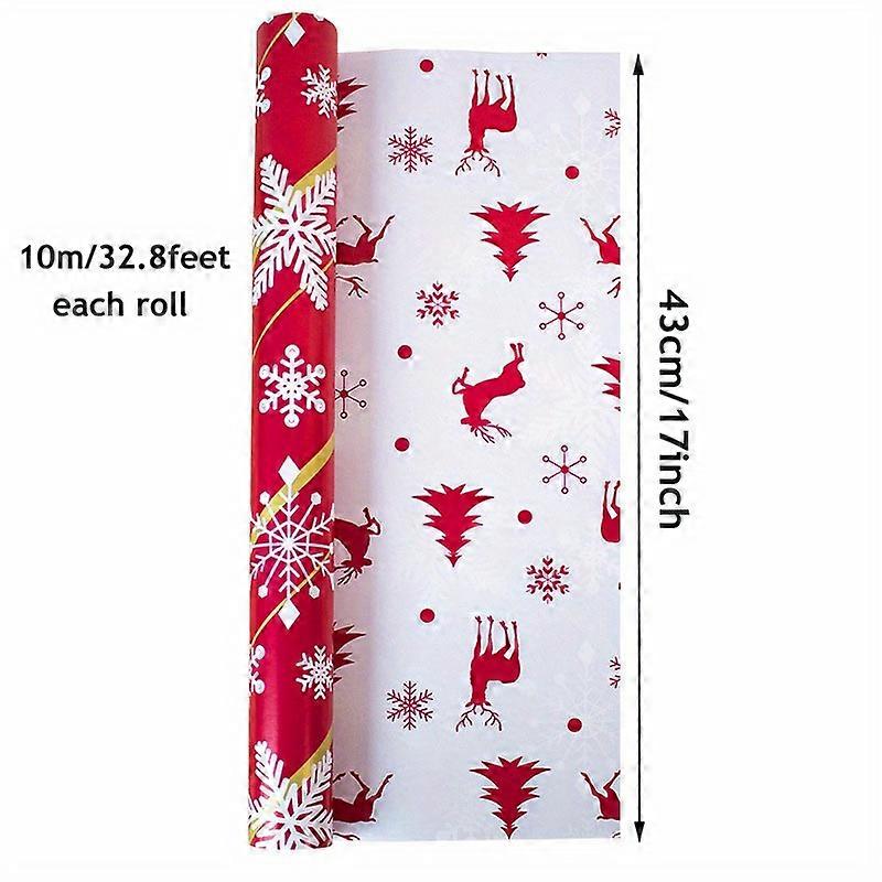 Christmas Wrapping Paper, Reversible Design Kraft Paper Holiday Wrapping Paper Roll -For Holiday Gift Wrap, 32.8feet (10m)