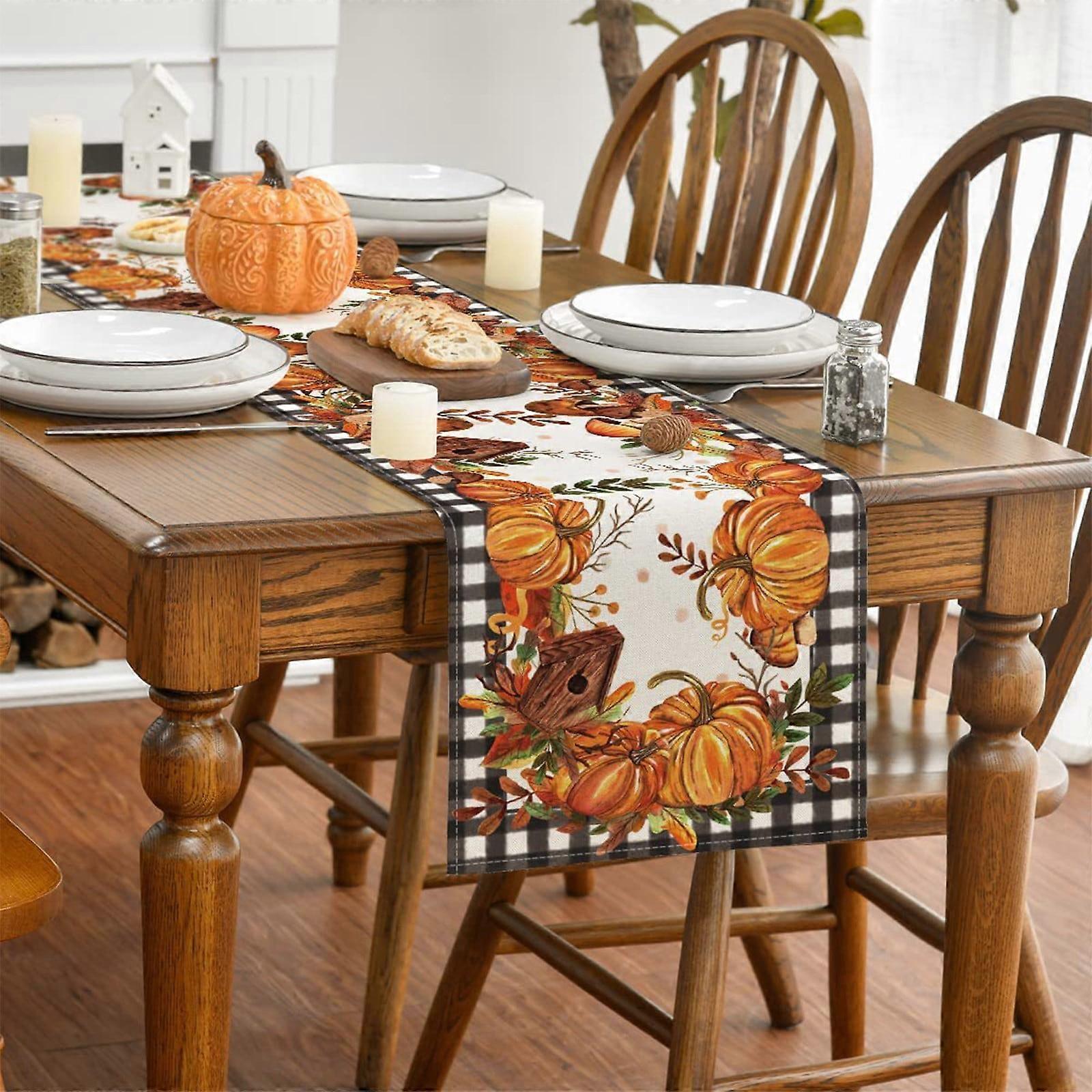 Luckky Pumpkin Table Runner, Cotton Linen & Burlap, Farmhouse Holiday Decor for Dining Room, Coffee, Wedding - Machine Washable