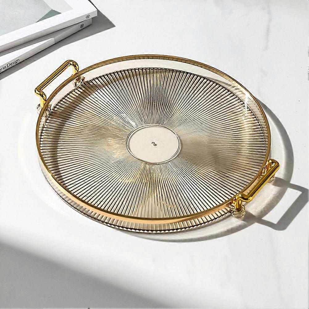 Luxury Round Serving Tray with Gold Handles Rim Border,11.6Inch Striple Plastic Serving Platters,Cosmetics Organizer for Fruit,Dessert Plate-Gold