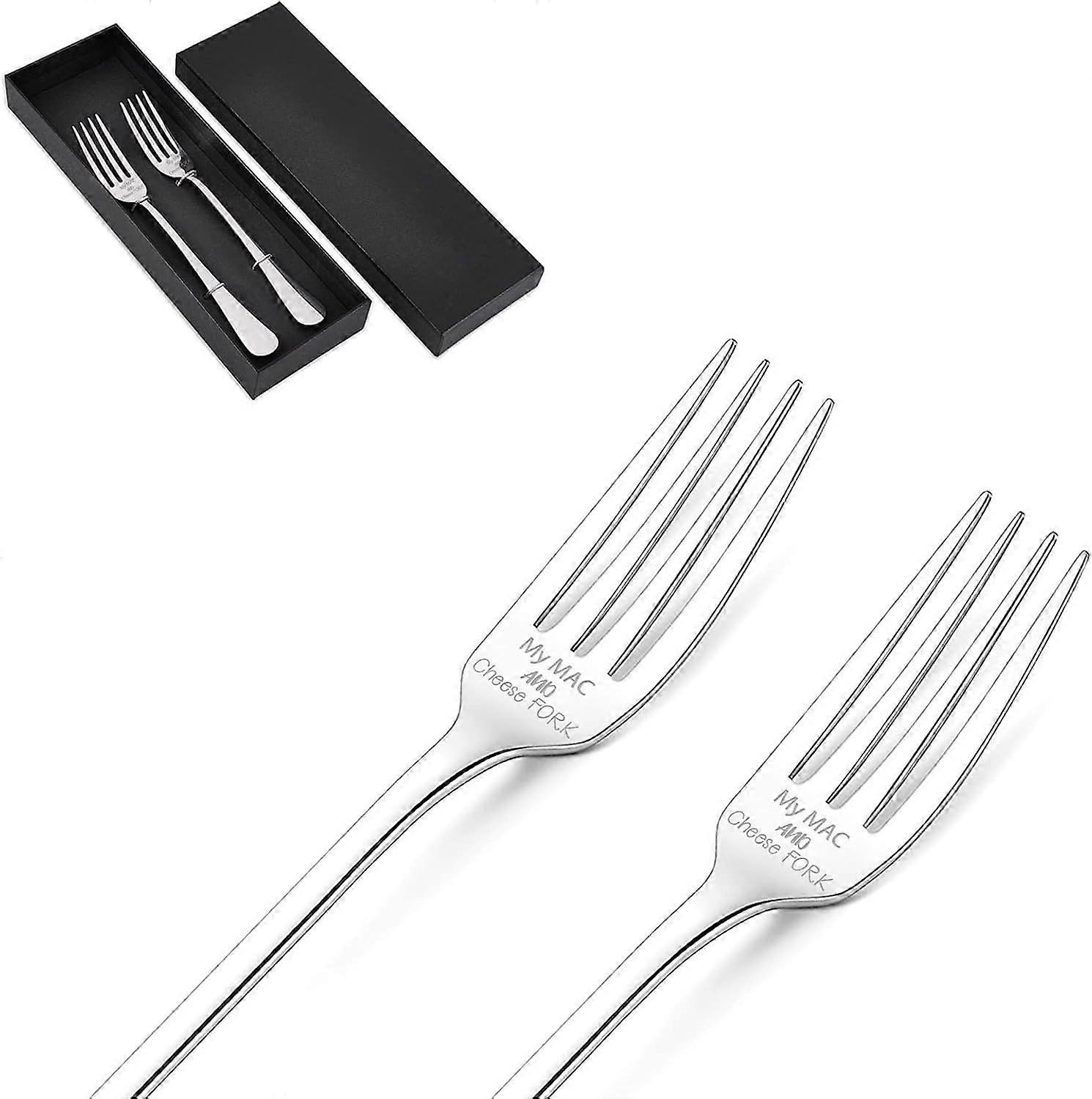 2Pcs Engraved Fork with Gift Box Stainless Steel Funny Table Forks for Friends Families Festival Wedding 8Inches DIY