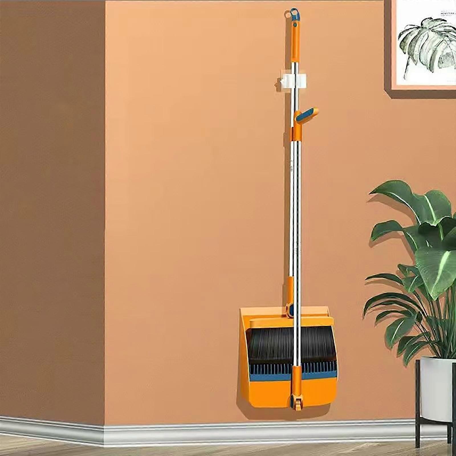 Broom and Dustpan Set for Home, Steel Dust Pan with 43" Long Handle Broom Combo for Kitchen Room Office,Orange