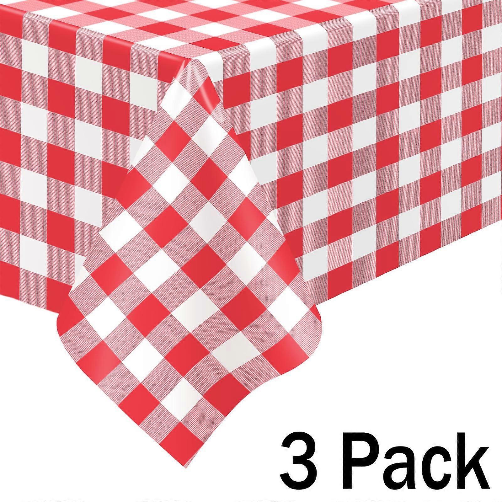 Plastic Table Cloth Disposable 3 Pack, 54 x 108 Inch, Red White Checked, for Party Picnic Wedding