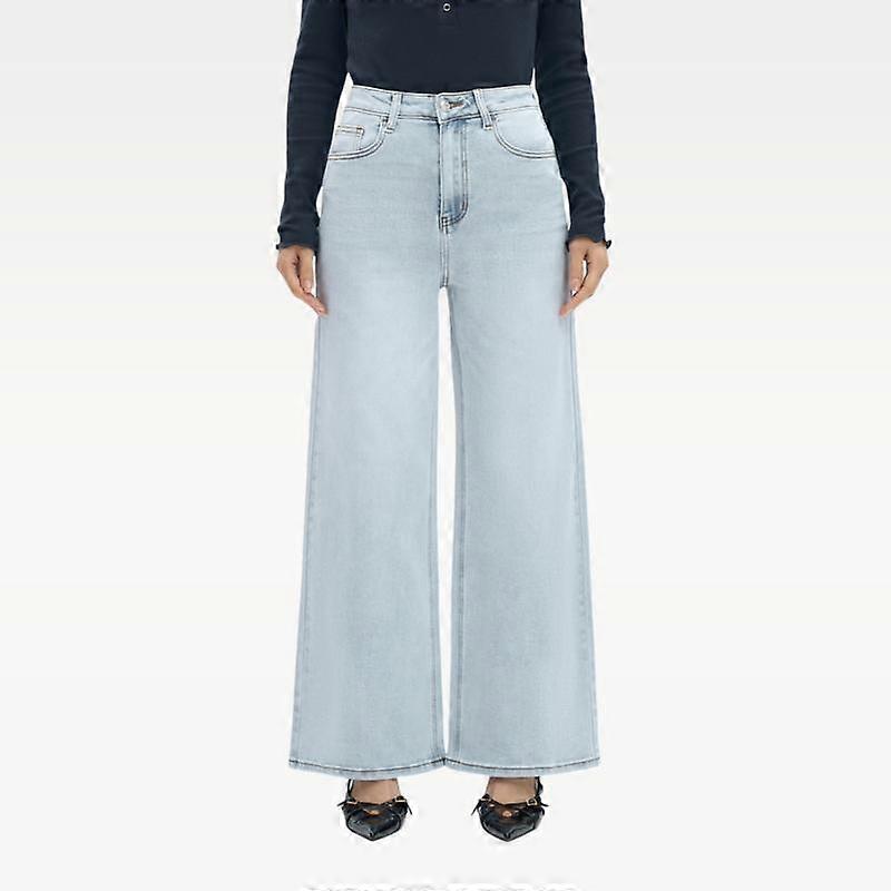 BlueMoment Wide Leg High-waisted Stretchy Women Jeans Buckle Baggy Pants Medium Blue M042701 Underwear Streetwear Lady Trouser Comfortable D