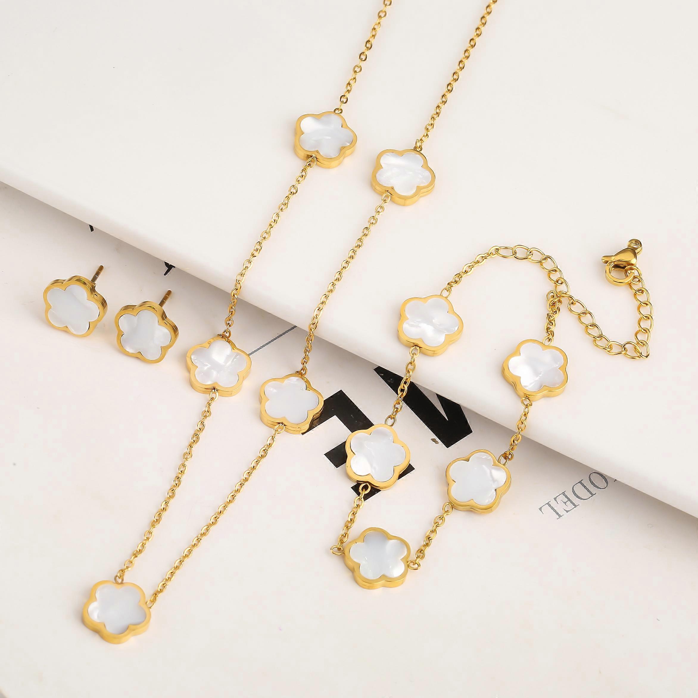 Stainless Steel Non Fading Minimalist Creative Plant Live Leaf Petal Flower Pendant Necklace Earrings Bracelet Jewelry Set