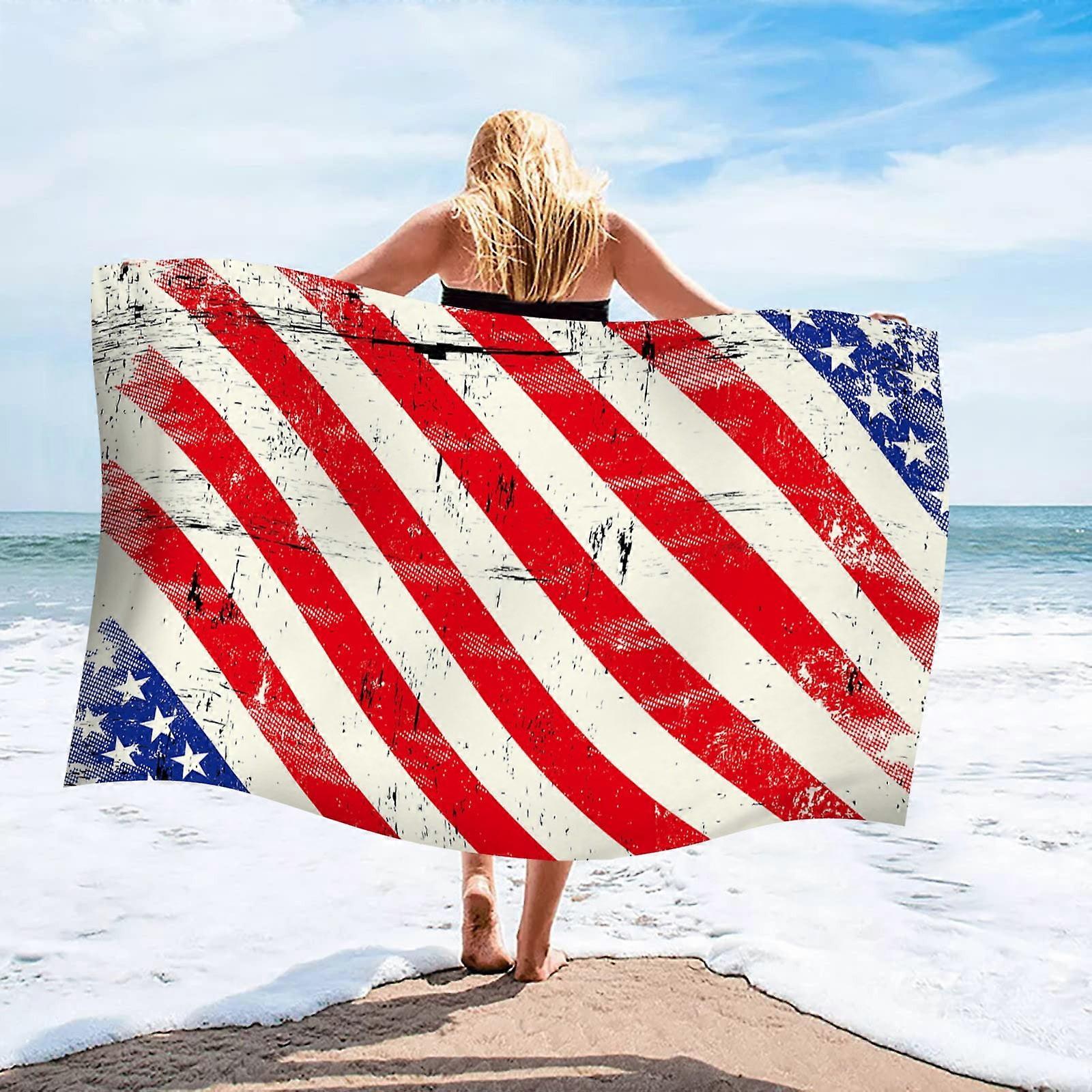 4th of July Patriotic Flag Microfiber Beach Towel - Water Absorbing, Sandproof, Lightweight, 27.5" x 55.1", Portable Vacation Essential
