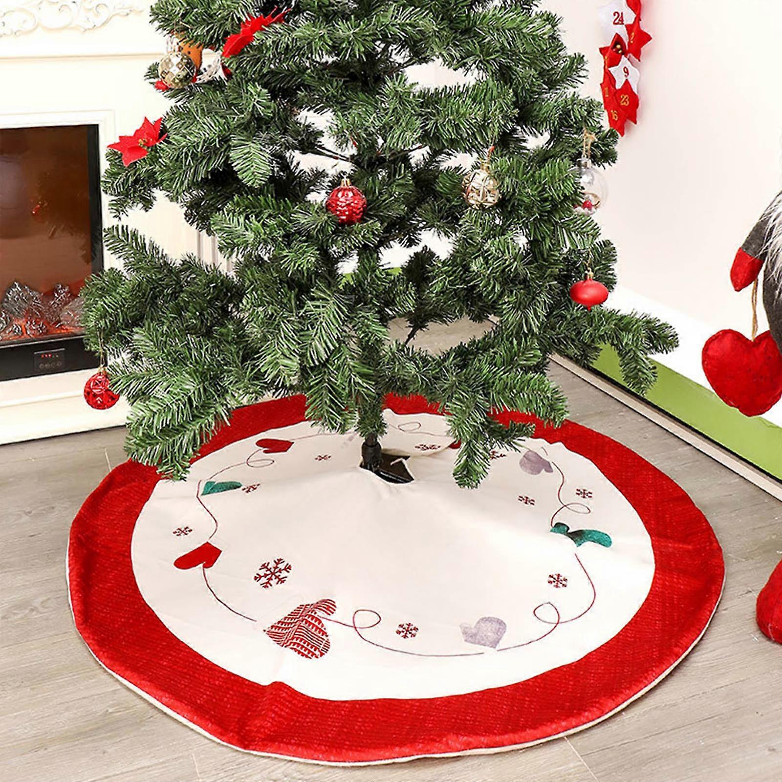 Red and White Christmas Tree Skirt, Compatible with Holiday Decor, Christmas Tree Cover Base & Stand Collar for Xmas & New Year Party