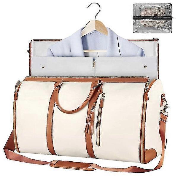PU Leather Travel Bag, Large Duffel Bag for Women, Waterproof Garment Bag XC White