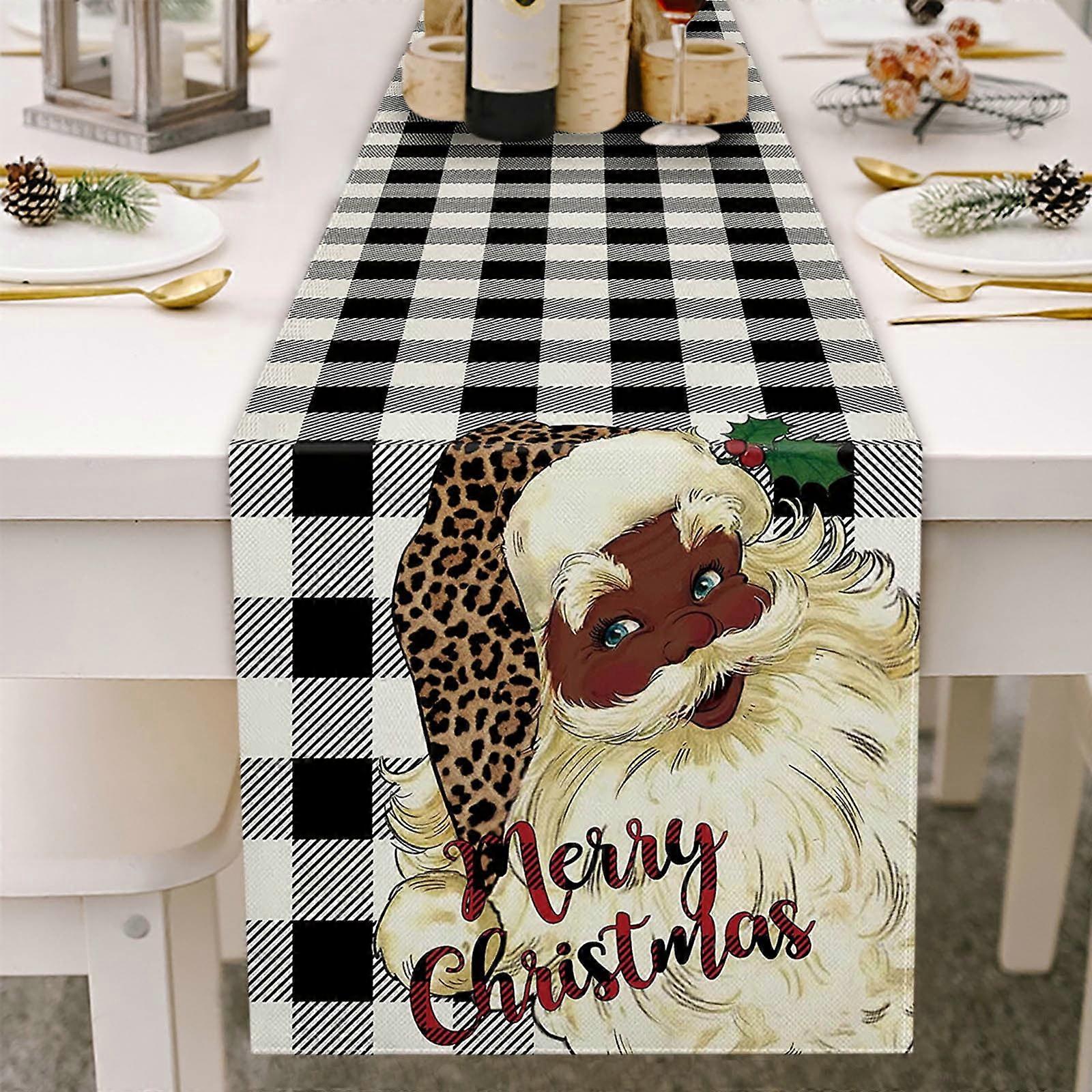 Lmueinov Christmas Table Runner 13x72 inch, Black Santa Plaid, Holly Berries, Holiday Kitchen Dining Decor