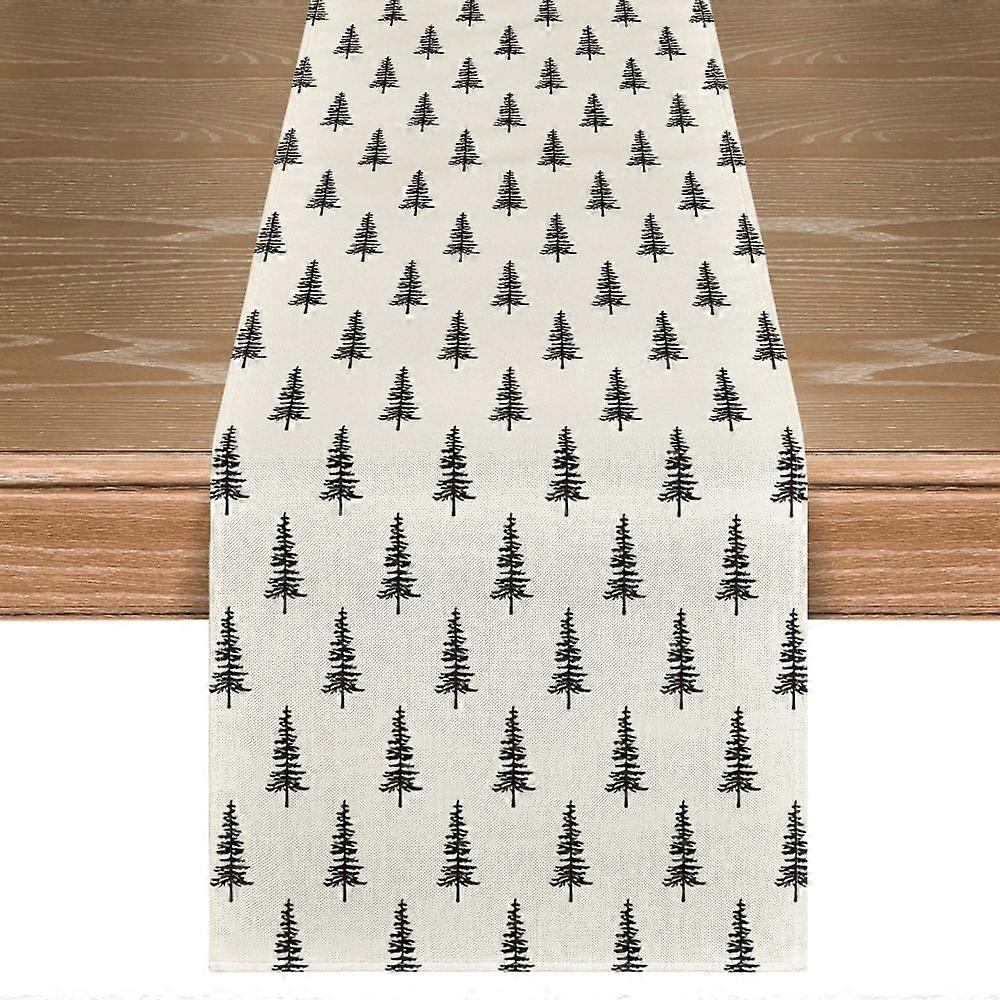 Smile Beige Xmas Tree Christmas Table Runner, Seasonal Winter Kitchen Dining Table Decoration for Home Party Decor 13x108 Inch