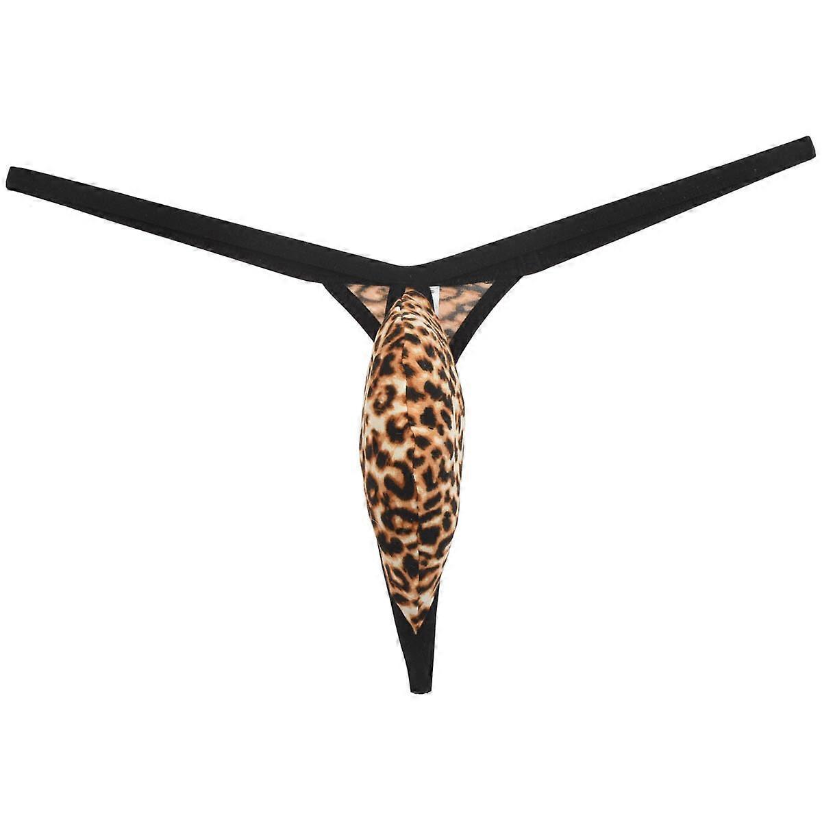 Men Leopard Thong Micro T-Back Bikini Tangas Pouch Drop-shaped String Underwear