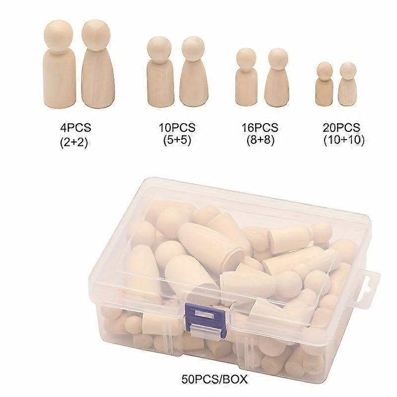 50pcs Wooden Peg Dolls Peg People Doll Bodies Wooden Figures Decorative Peg Doll People for Youngsters DIY Art Craft Painting