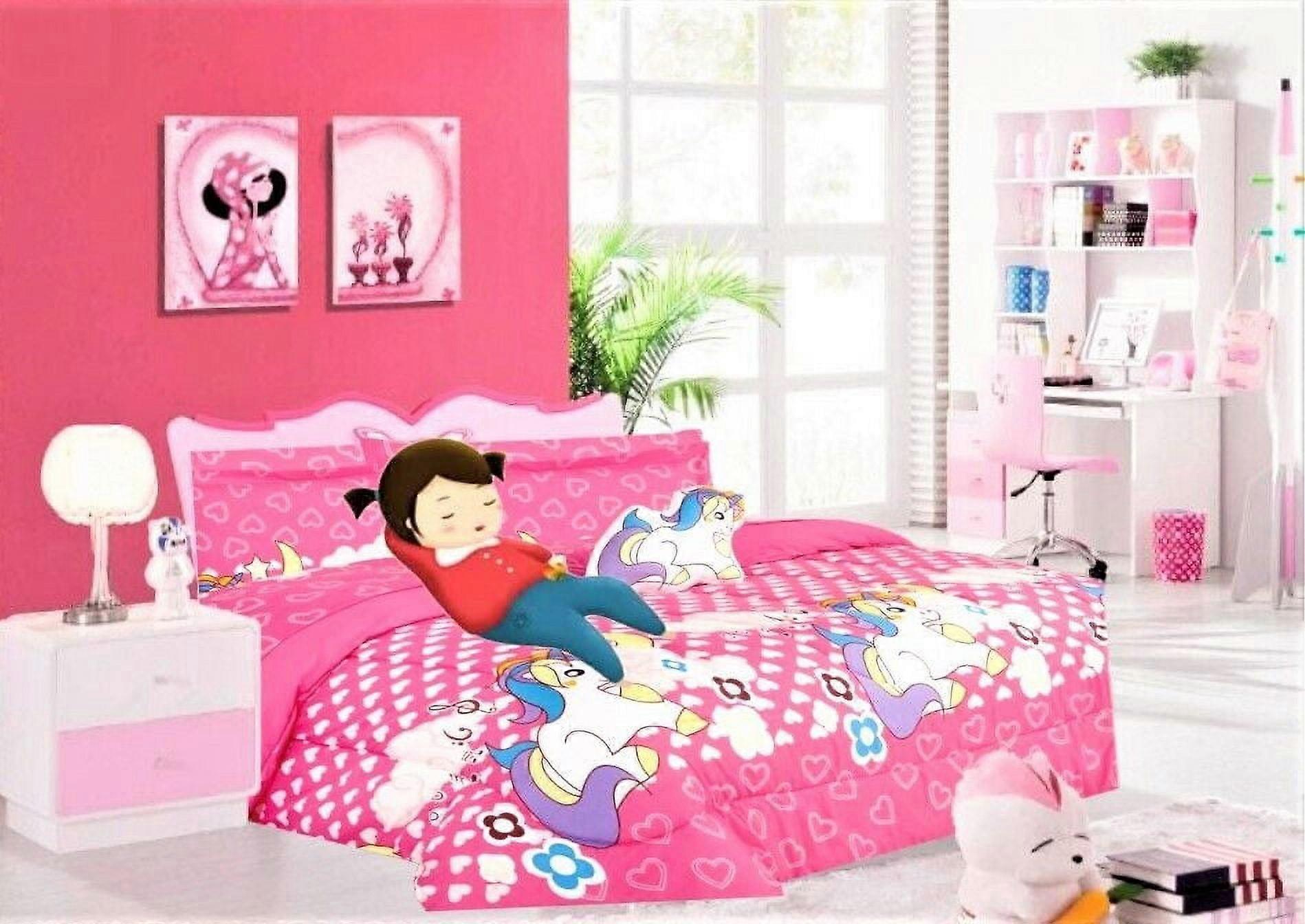 SAMIMPORT-2011 6-Pieces Pink Unicorn Comforter Bed-in-a-Bag Sets, Twin Size