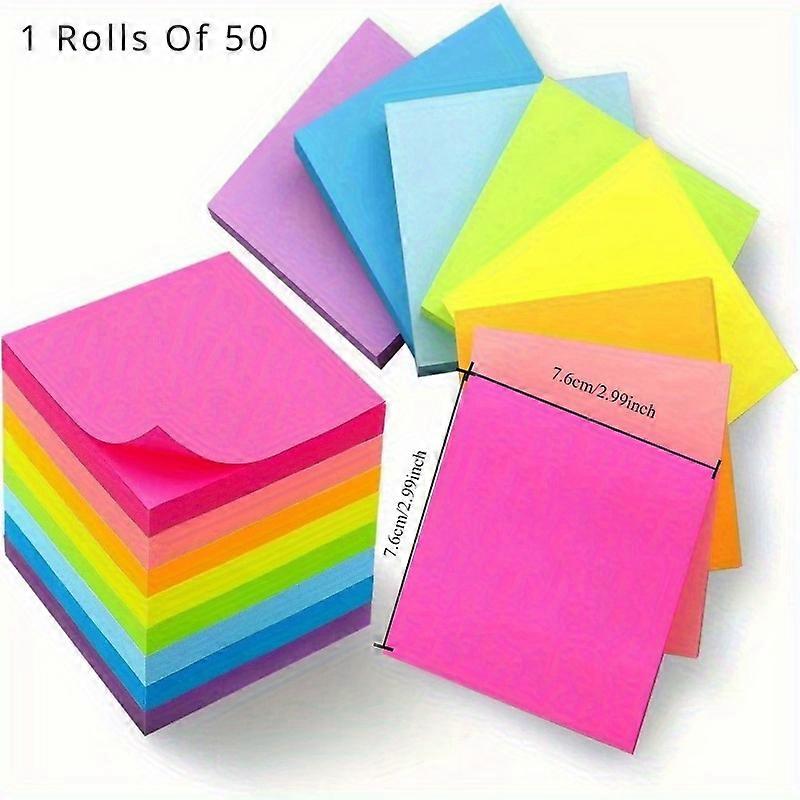 1 Rolls Of 50 Fluorescent Sticky Notes, Colored Sticky Notes, Student Sticky Notes, Office Supplies Sticky Notes