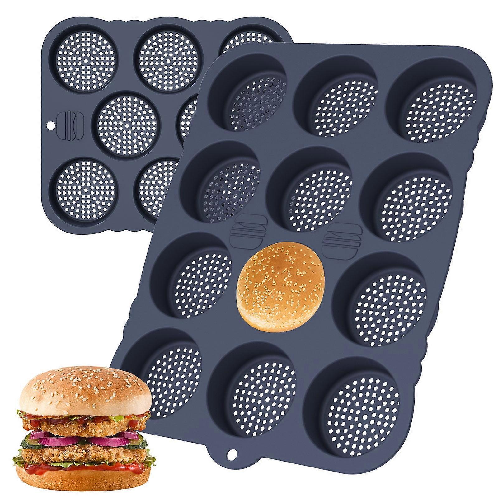 Grusce Silicone Hamburger Bun Pan 8/12 Cavity, Non-Stick & Reusable, Dishwasher Safe, Easy Release for Homemade Buns