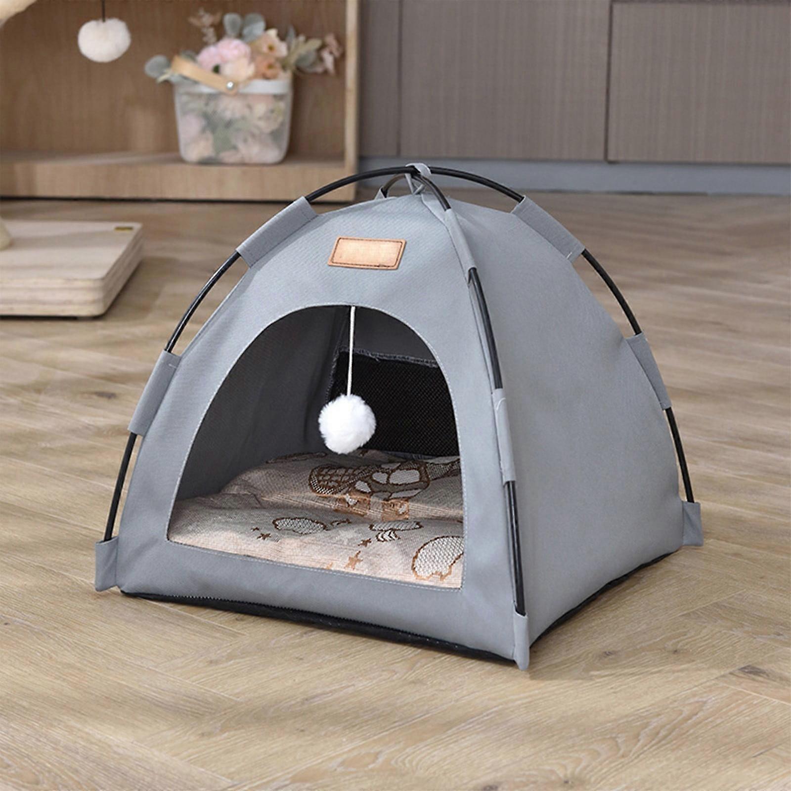 Four-Season Semi-Enclosed Pet Tent House For Small Dogs Cats Teddy Tent Dog House Washable And Waterproof Outdoor Cats Bed Features: Four season design: This pet tent house is suitable for all seasons, whether it is cold winter or hot summer, providing a comfortable resting environment for animals. Semi closed structure: Adopting a semi closed, it not alone ensures the security and privacies of animals, but also facilitates owners to observe the status of animals at any. Suitable for small dogs and cats: Specially designed for small dogs and cats to use, such as teddy bears, with a moderate size, easy to carry and place. Removable washable material: The inner lining is made of removable washable material, which is convenient for cleaning, maintains the hygienes of the pet bed, and avoids odors and growth. Outdoor rainproof function: It has good rainproof performance, which can effectively guard animals from rainwater invasions even when used outdoors, ensuring the comforts and security of animals. Product Description: Product Name: Cloth tent Material:cloth Colour:Gray Quantity:1sets Packaging Size: 40x40x3cm /15.7x15.7x1.2 inches Total Weight:200g/ 0.44 L B Package Contents: 1x Tent All-Weather Pet Shelter:Crafted with quality materials, this semi-enclosed pet houses provides superior waterproof and windproof protection for outdoor cats, small dogs, or stray animals. The reinforced structure ensures long-lasting use in harsh weather conditions. Convenient Foldable Designs:Features a zippered roof for effortless folding and storage. The detachable designs allows quickly cleaning, making it ideal for garages, porches, or backyard use. No tools required for setup! Convenient Foldable Designs:Features a zippered roof for effortless folding and storage. The detachable designs allows quickly cleaning, making it ideal for garages, porches, or backyard use. No tools required for setup! Versatile Multi-Pet Use:Suitable as a washable retreat for cats, small breed dogs, rabbits, or even backyard poultry. Available in multiple sizes to accommodate different pet. Good Indoor/Outdoor Solution:You can add a soft cushion to transform it into a snug indoor pet bed. Portable enough for travel or picnics—a thoughtful gift for pet lovers!