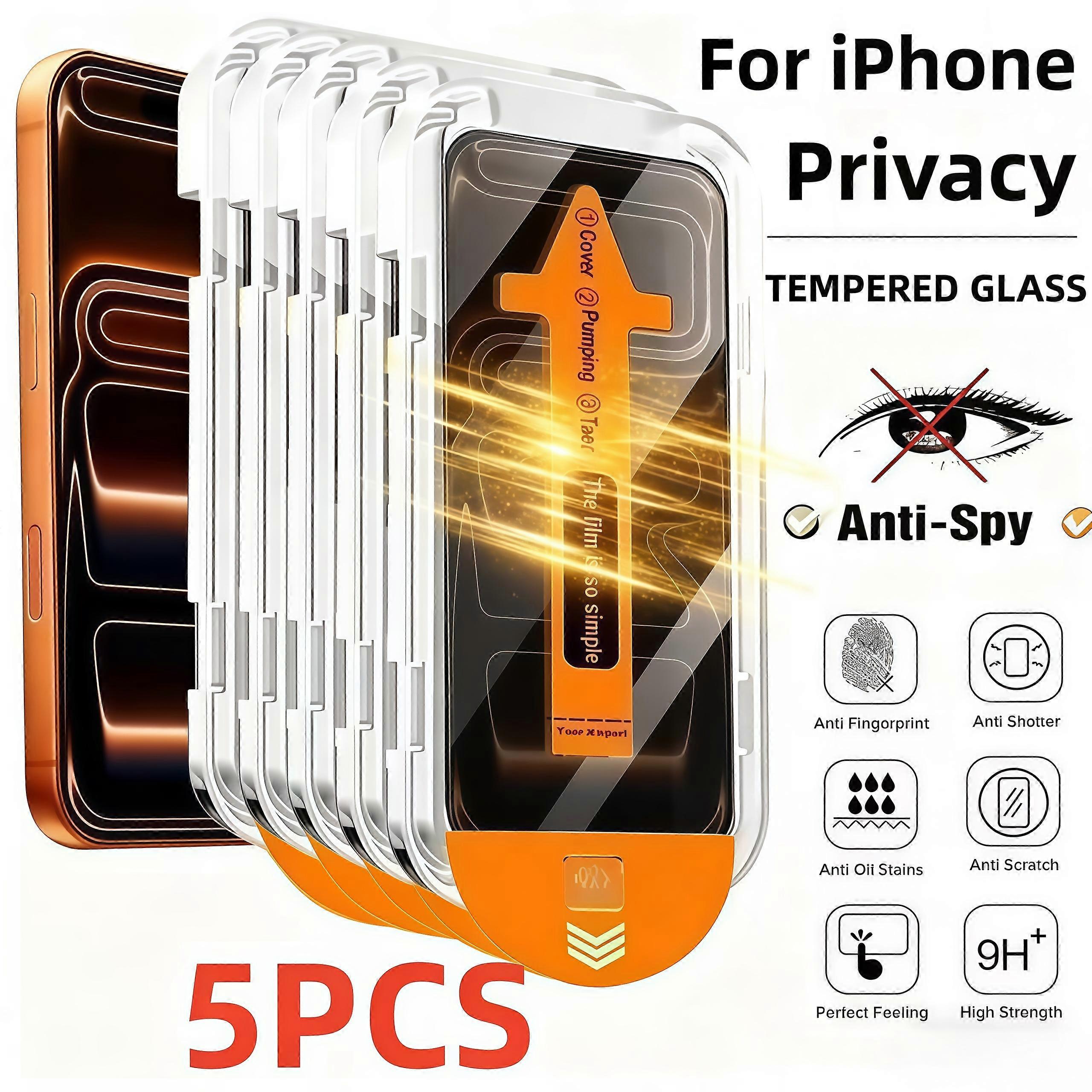Protecteur d'��cran pour t��l��phone portable, 5 pi��ces, en verre tremp�� Anti-espion, pour Apple iPhone 17Pro Max 15 16 Pro 14 Plus 13 12 Mini