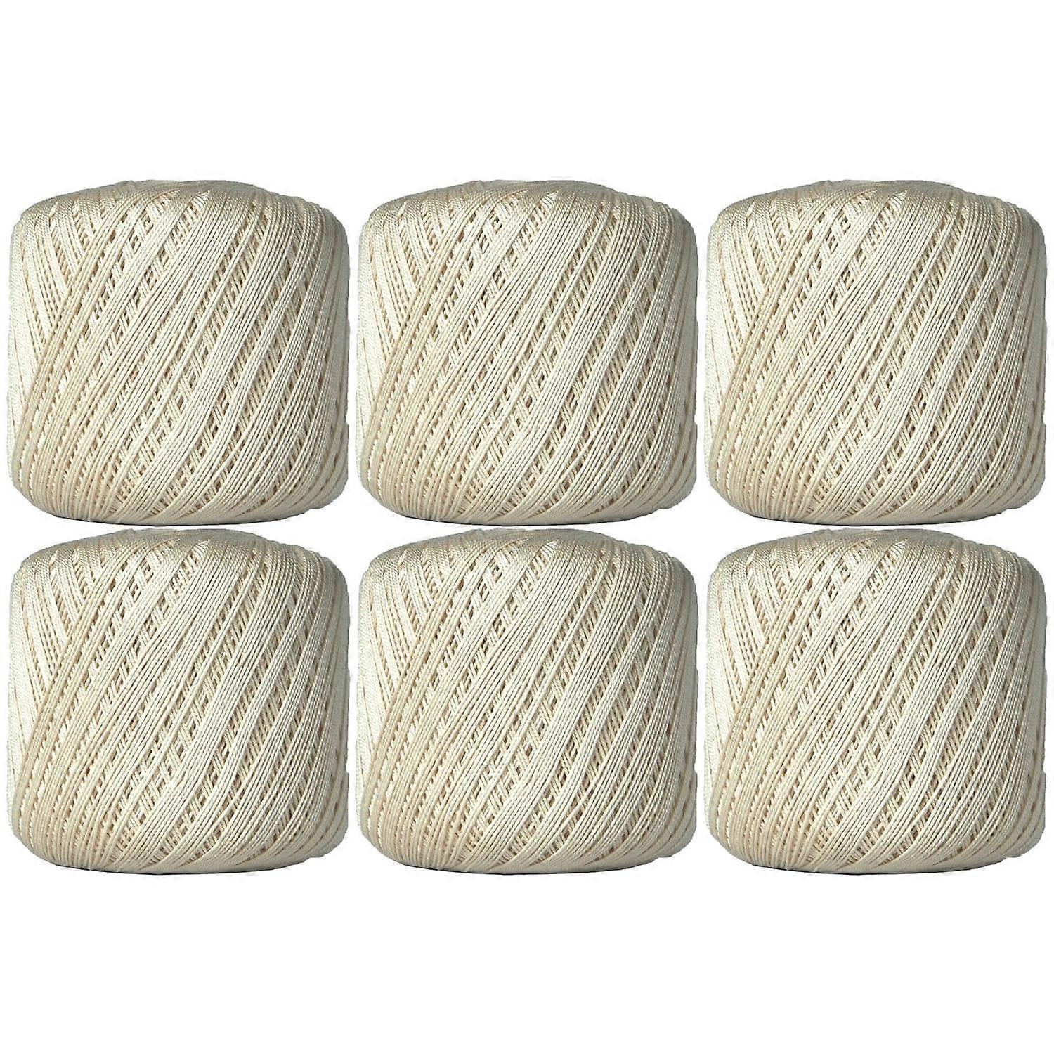 Threadart 6 Pack 100% Pure Mercerized Cotton Crochet Thread, Size 10, Color 2 NATURAL, 50g Balls (175 yds each), compatible with all standard
