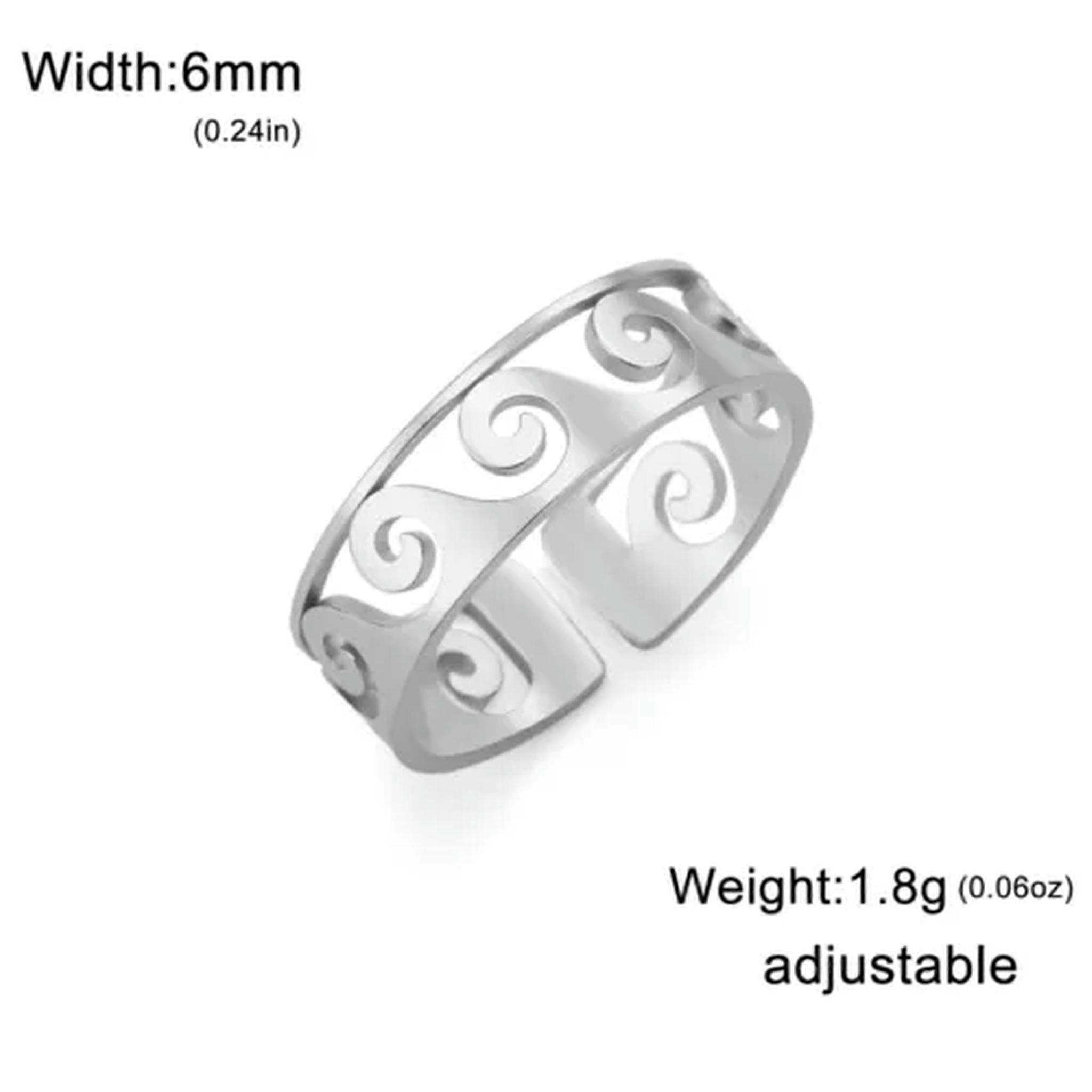 RSAMD Waves Geometric Open Ring Women Stainless Steel Adjustable Finger Ring Jewelry-Adjustable-A Steel