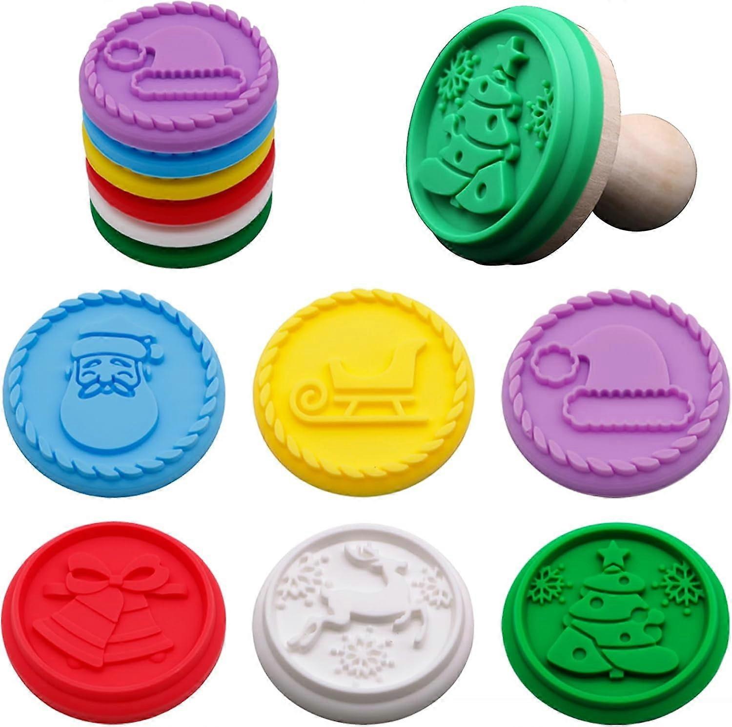 Silicone Christmas Cookie Stamps with Wood Press, Compatible with Bell, Reindeer, Tree Cutters, Non-stick BPA Free Baking Gift