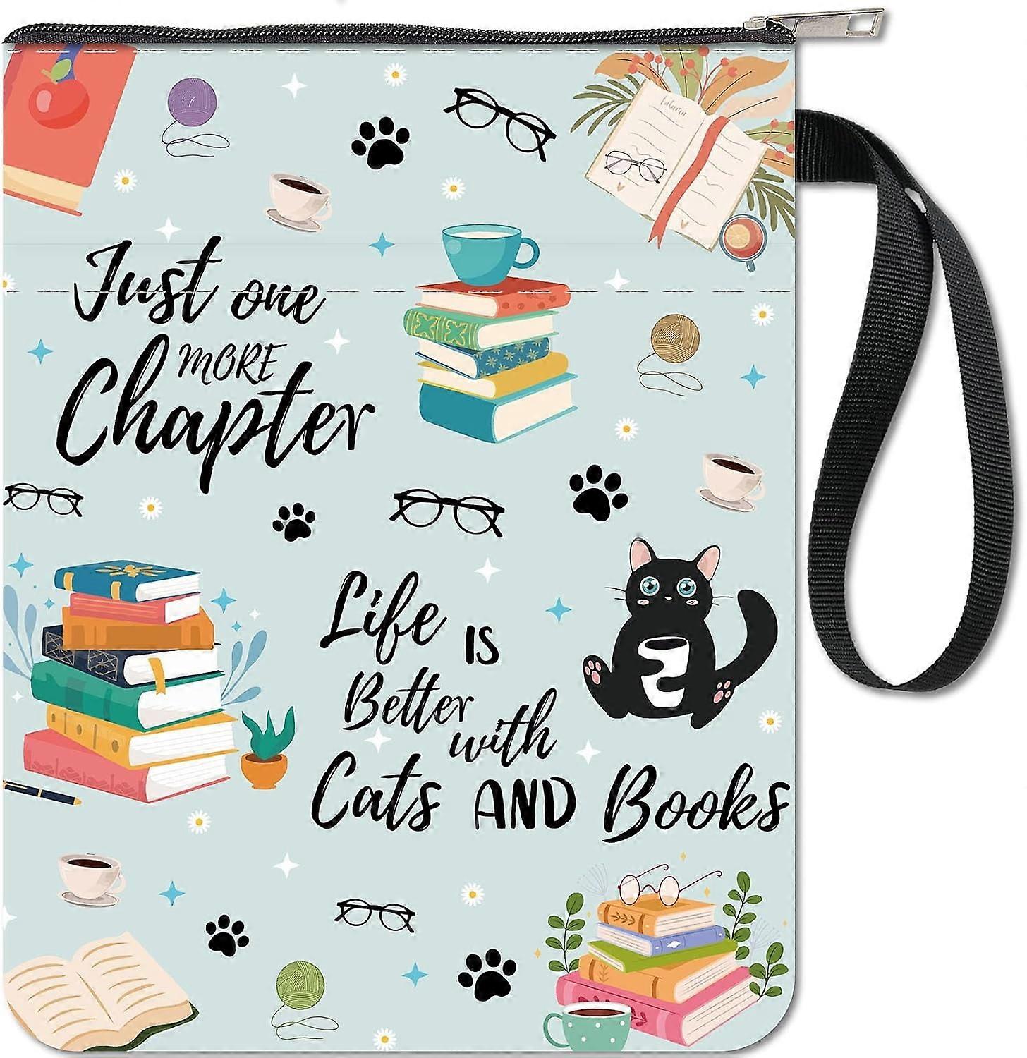 Book Sleeves Cat Coffee Design, Compatible with Paperbacks, Washable Fabric Cover with Zipper & Extra Pocket, Great Gift for Book Lovers