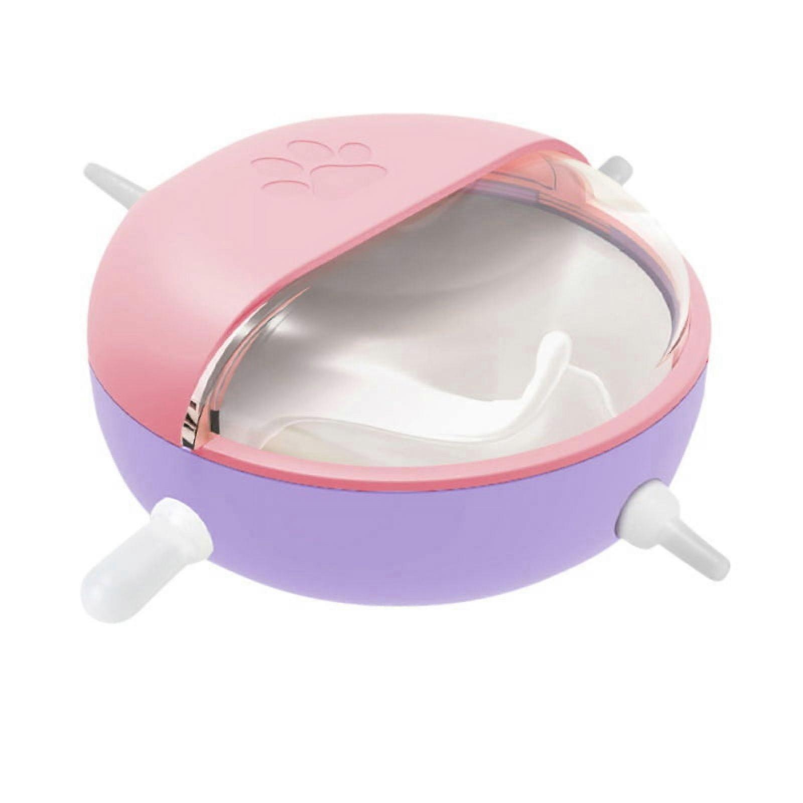 Silicone Puppy Feeder, Multi-Mouth Pet Milk Bowl with 4 Nipples, Silicone Bionic Breastfeeder Self Feeding Bubble Bowl for Newborn Doggie Kitten,Pink