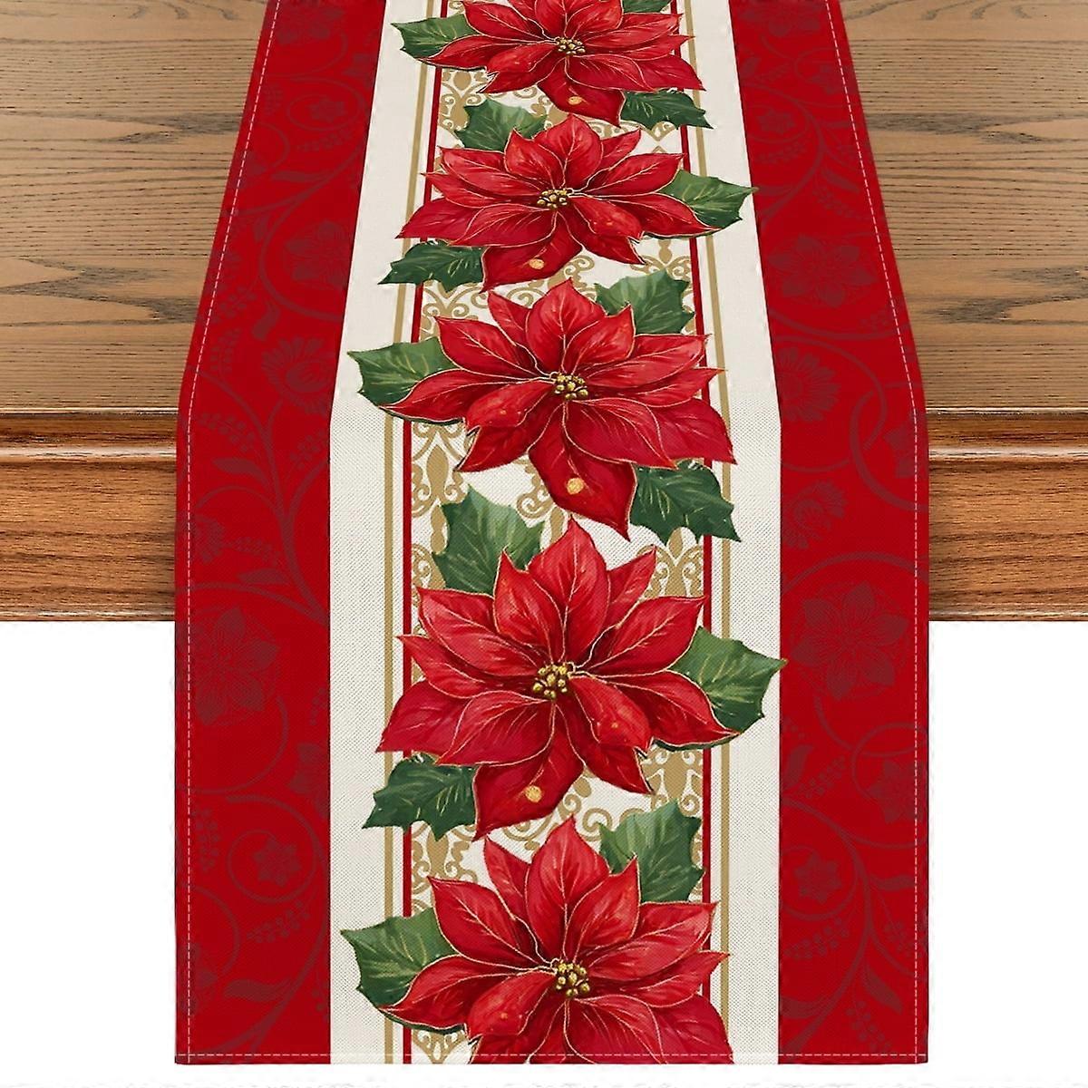Smile Poinsettia Christmas Table Runner for Xmas Winter 13 x 90 Inch, Red
