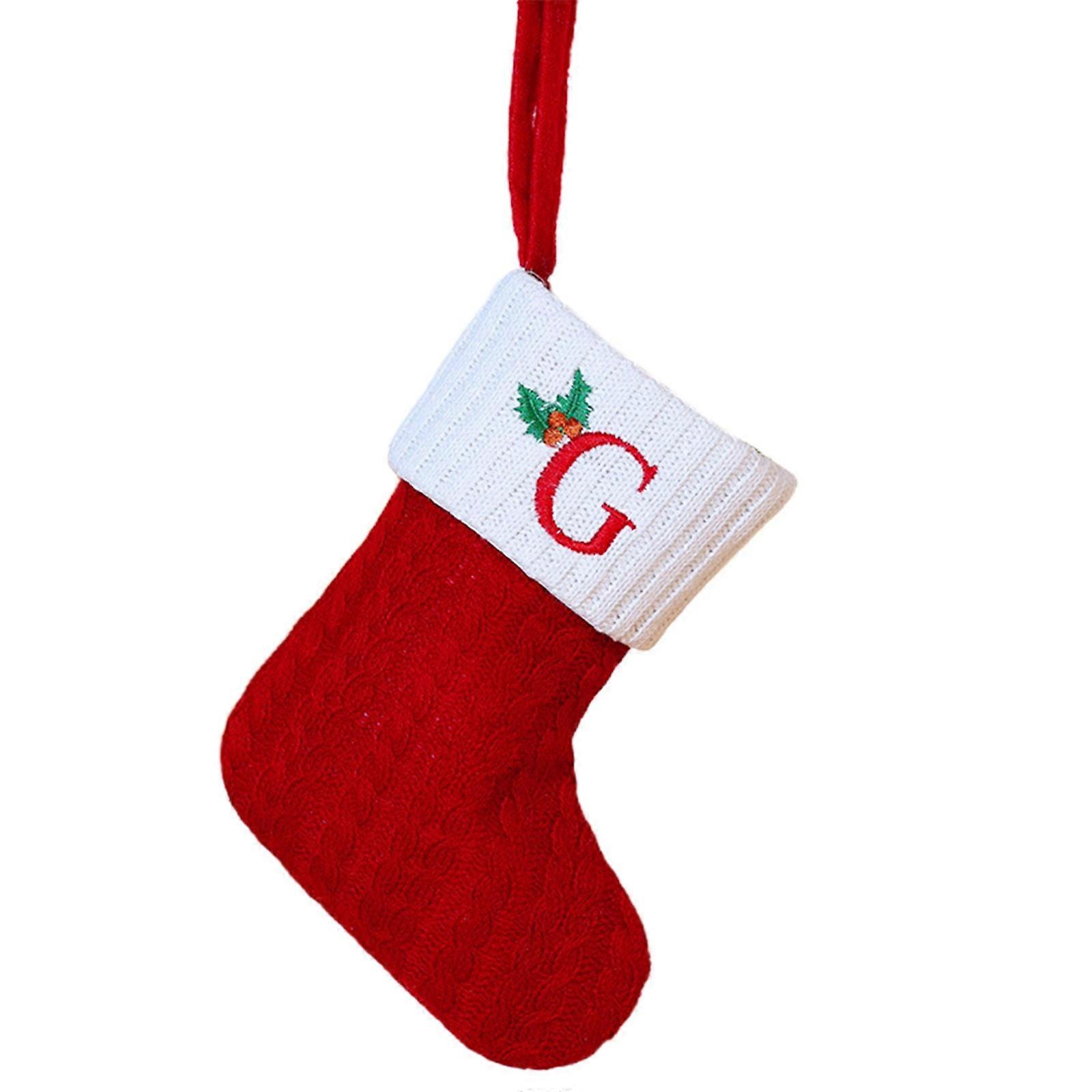 Summercome Christmas Stockings with Initials, 7.9" Small Embroidered Letter G Knit Red White Stocking for Family Holiday Decor, compatible with Xmas
