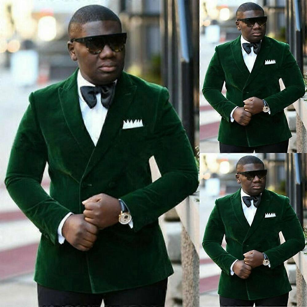 Men's Blazer Slim Fit Double Breasted Green Velvet Formal Wedding Groom Tuxedos