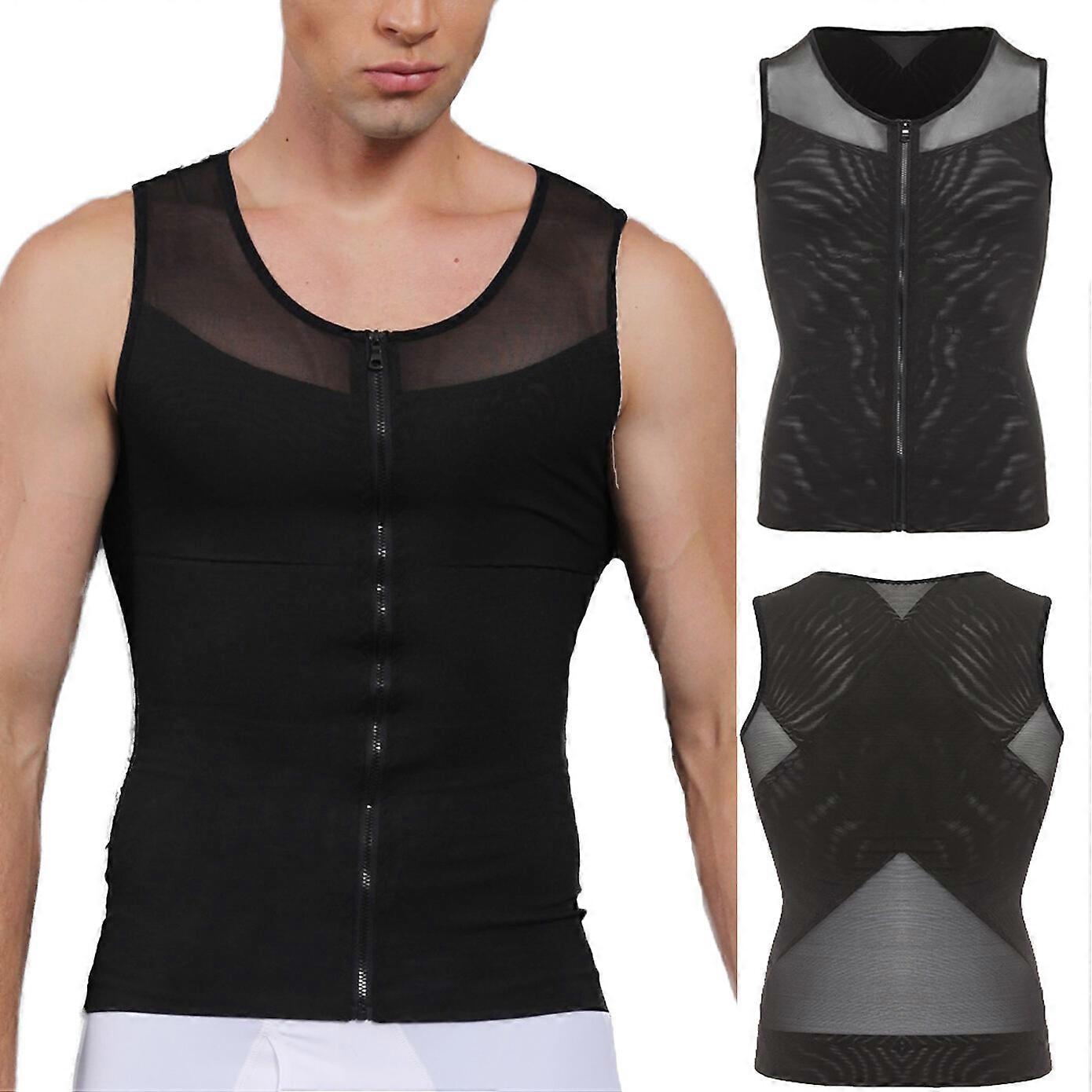 Mens Gynecomastia Moobs Belly Compression Shirt Zipper Slimming Body Shaper Vest