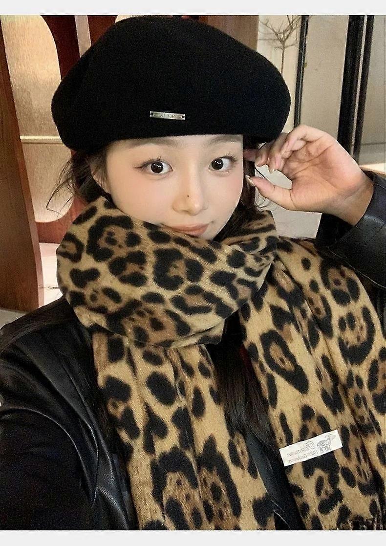 Autumn Winter Thickened Women's Scarf Leopard Print Tassel College Style Versatile Warmth Neck Warmer Shawl Fashion Accessory
