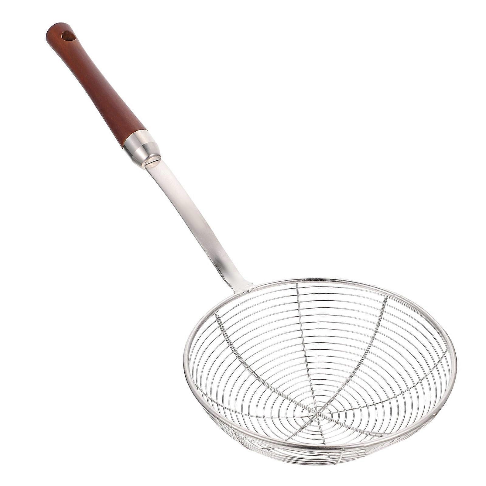 OUNONA 1Pc Stainless Steel Kitchen Spider Strainer Skimmer with Wooden Handle