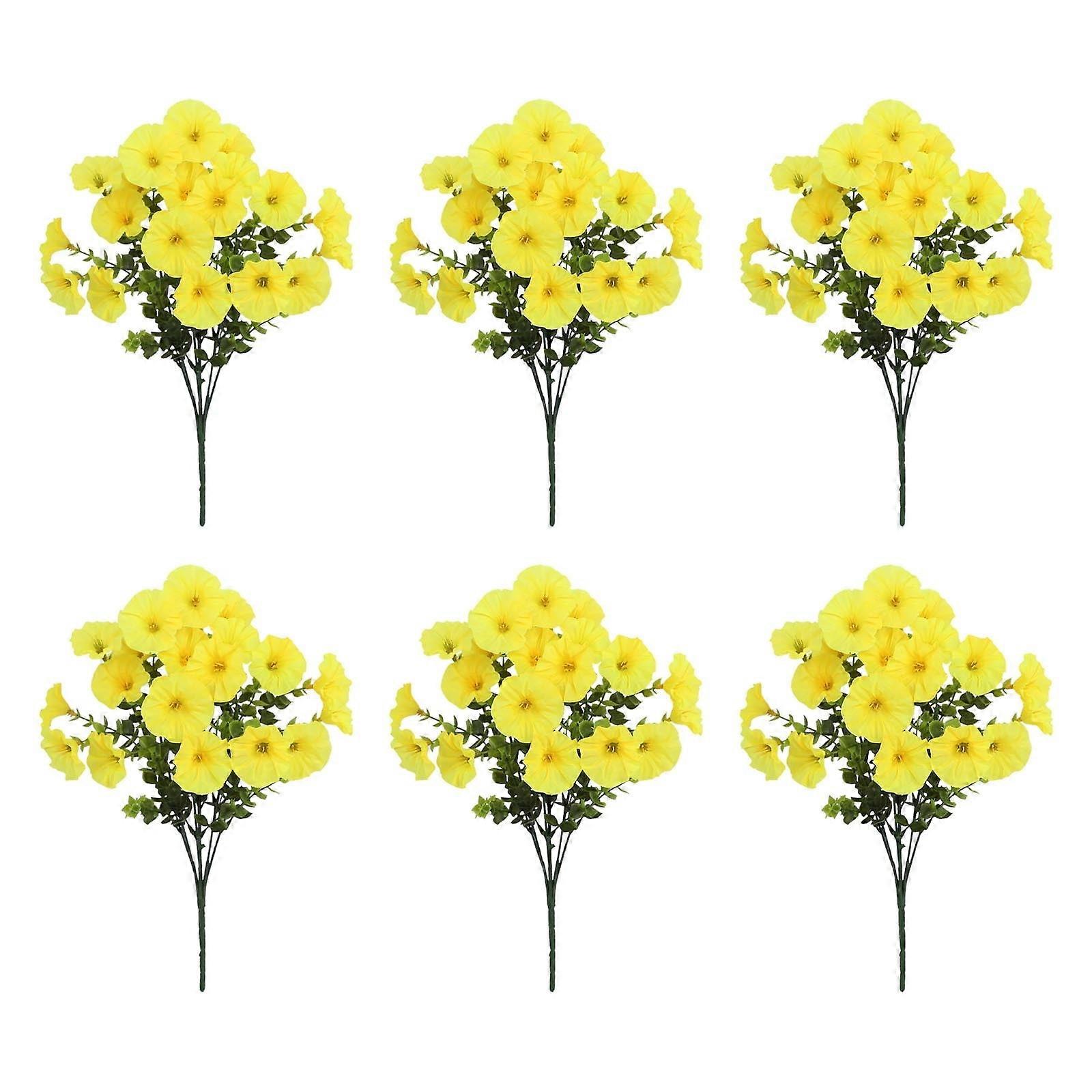Summercome 6 PCS Artificial Outdoor Flowers, Faux Silk Morning Glory Planter, UV Resistant for Patio, Balcony, Garden (Yellow)