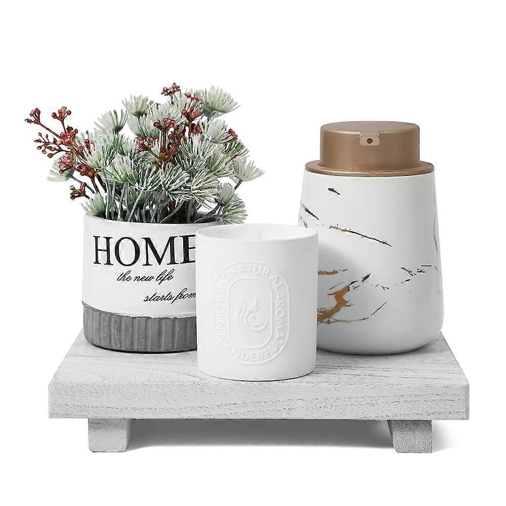 Wood Tray Pedestal Stand Farmhocome Bathroom Decor Decorative Wooden Riser Kitchen Soap Dish Holder for Vanity, Counter, Sink