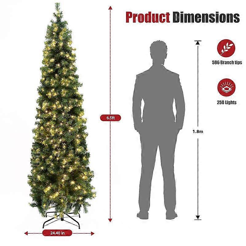 Okicoler Pre-lit Kingswood Fir Slim Artificial Hinged Christmas Tree Skinny Corner Xmas Tree with 350 Incandescent Warm White Lights Prelig