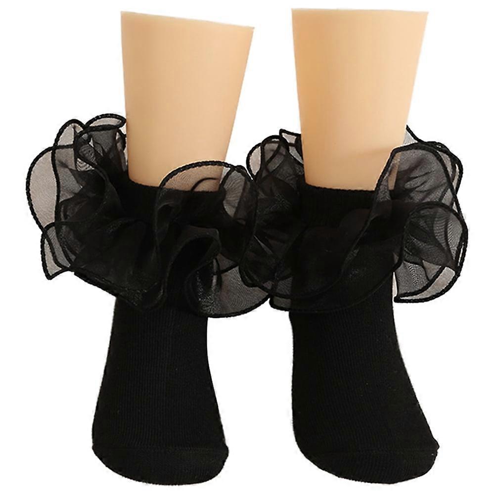 JANDEL Baby Girls Newborn Ruffle Socks Toddler Double Lace Big Frilly Princess Dress Socks for Infant Little Kids Black 0-10Y