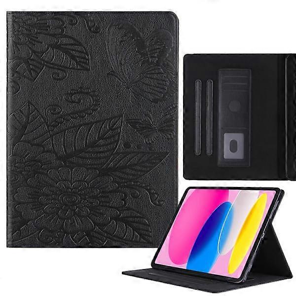 Compatible with iPad 11 11th Gen / 10.9 10th Gen 2022/2025 Case with Embossed Butterfly Love Flower Design in Leather Case Black