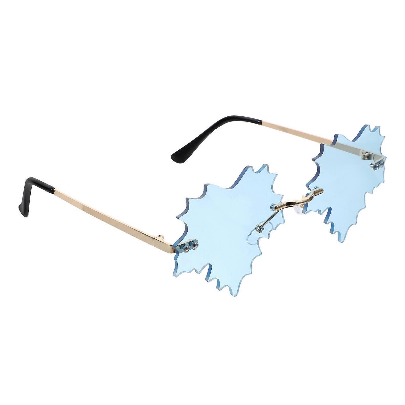 Add a touch of fun to your party outfit with the Funny Sunglasses. These sunglasses are designed to make you the center of attention at any party or event. The unique leaf-shaped frames showcase your fashion-forward attitude. Stand out from the crowd with these must-have sunglasses. Features - Color: Blue -Material:Metal, PC - Size: 14.00X13.50X5.80cm/5.50X5.31X2.28in -Stand out and be the center of attention at any party or event with these unique sunglasses. -These leaf-shaped frames are not only fashionable but also add a touch of fun and playfulness to your look. -The trendy and stylish lenses make a bold statement, suitable for both women and men. -Make a lasting impression with these eye-catching sunglasses, provides a fun look to you. -Great for Festival party, themed costume, shopping, travelling, taking photos, and so on. Package list: 1 x rimless sunglasses