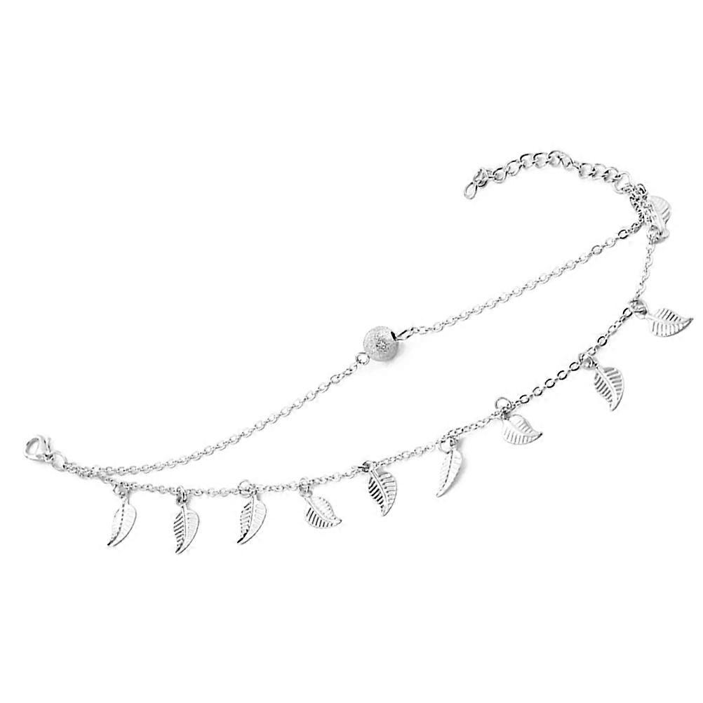 Ankle Chain for Girl Small Leaves Tassel Anklet Bracelet Silver