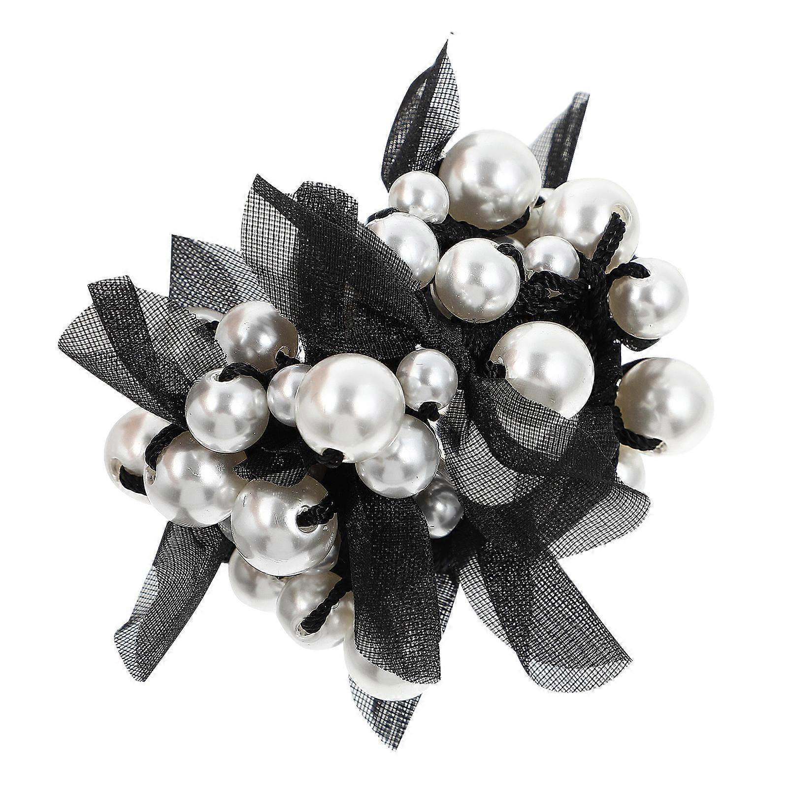 Girl Hair Tie Elastic Hair Loop Pearl Design for Decor Black Synthetic Material Stylish and Comfortable