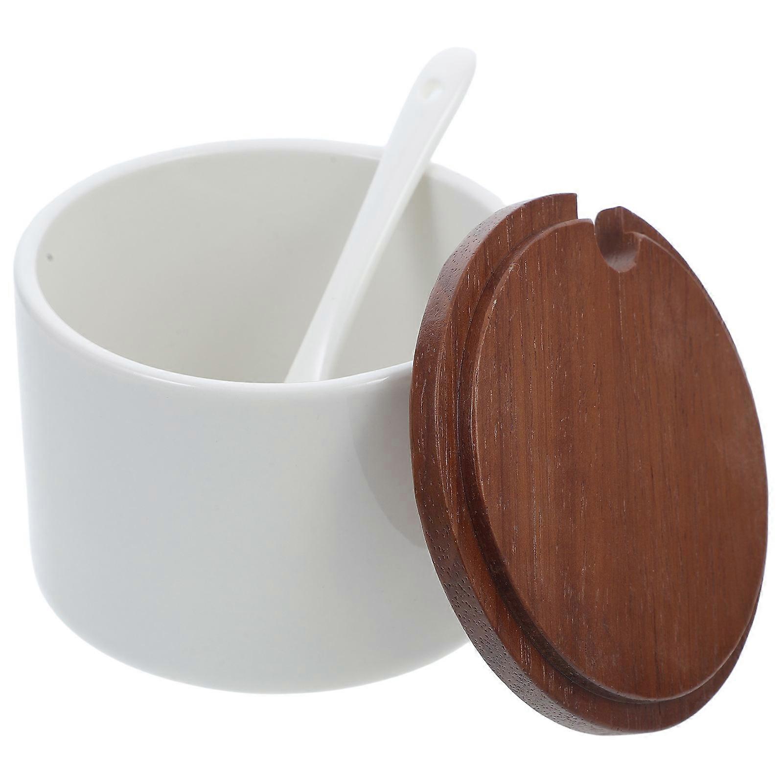 Assorted Color Ceramic Seasoning Jar for Salt Storage with Lid and Spoon