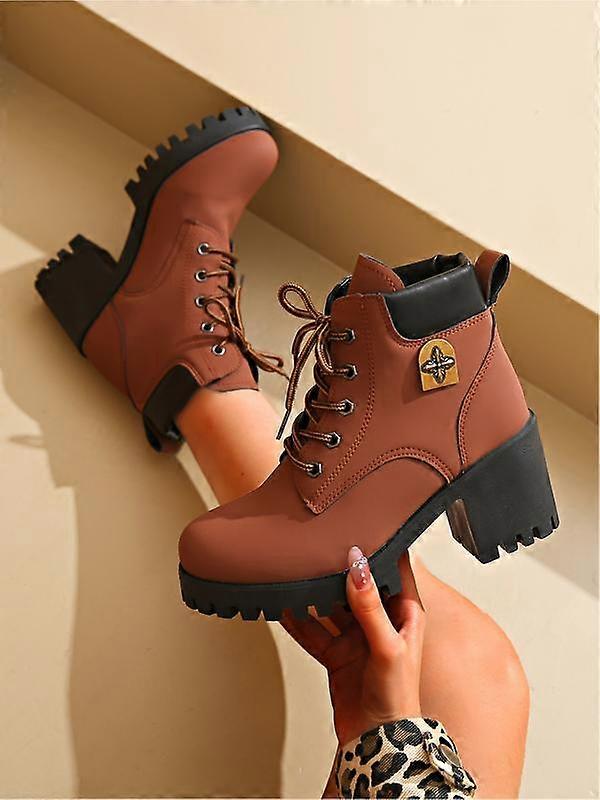 Fashionable women's autumn and winter short boots, thick-heeled high water platform waterproof shoes with laces for outdoor use, lightweight