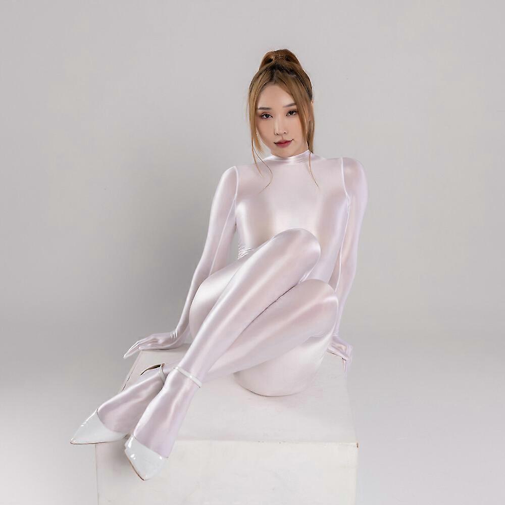 Women's Satin Bodystocking Glossy Leotards Bodysuit Jumpsuits Gloves Open Crotch