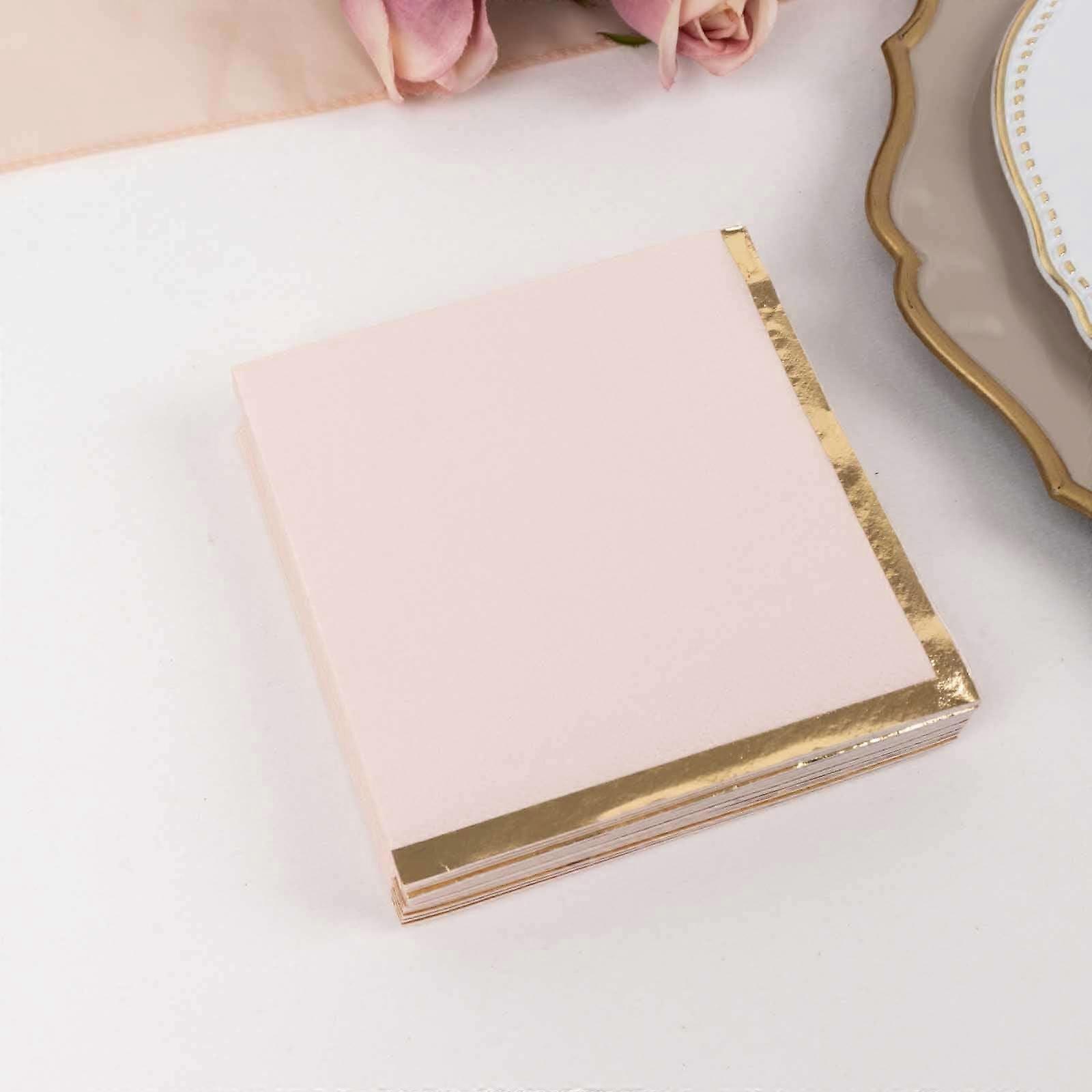 Efavormart 50 Pack Blush Paper Beverage Napkins with Gold Foil Edge, Soft 2 Ply Disposable Cocktail Napkins - 5"x5"